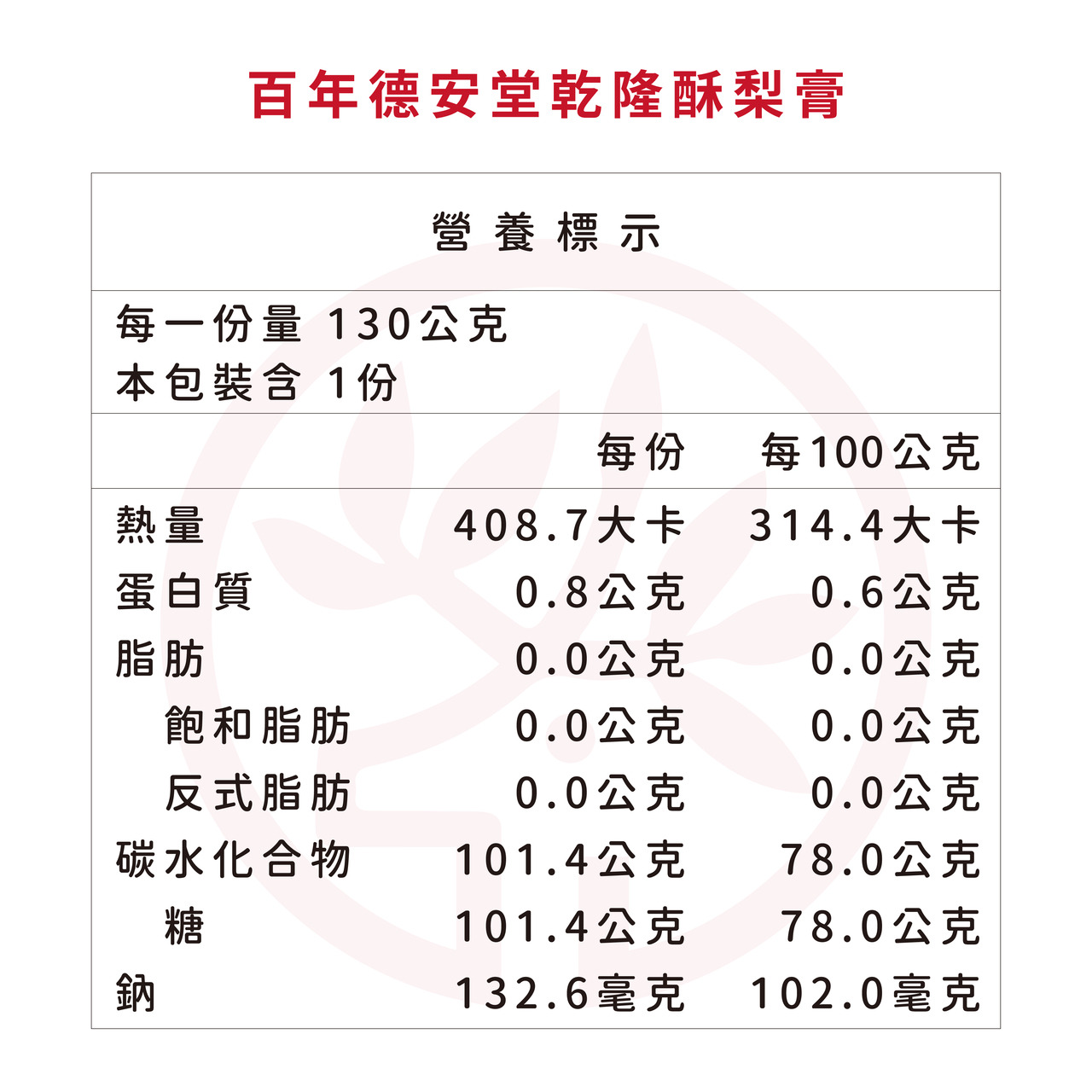 品 名:百年德安堂乾隆酥梨膏(130 公克 / 瓶)